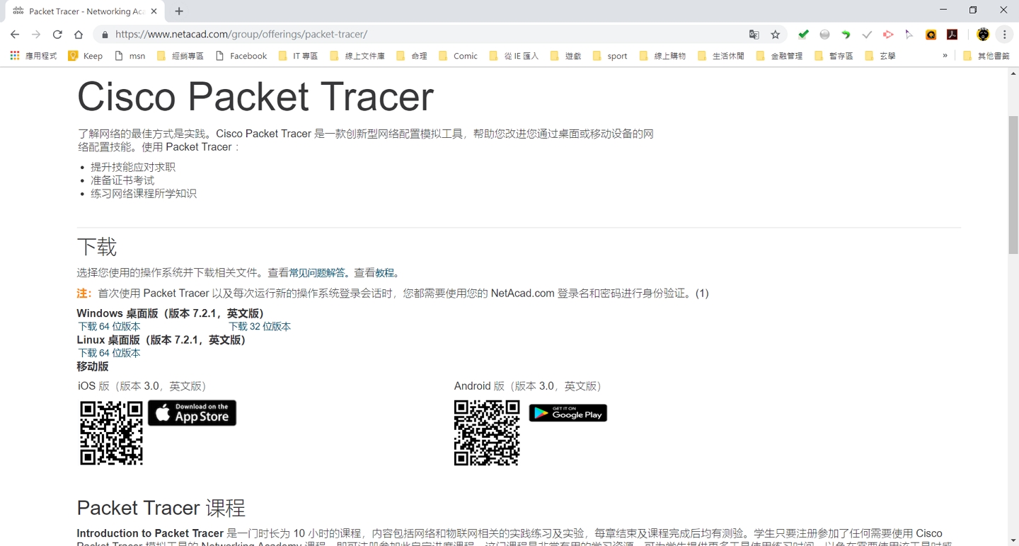 Packet Tracer 軟體只要到Cisco 的網路學院(Cisco Neacad)註冊就可以下載:Cisco 網路學院
